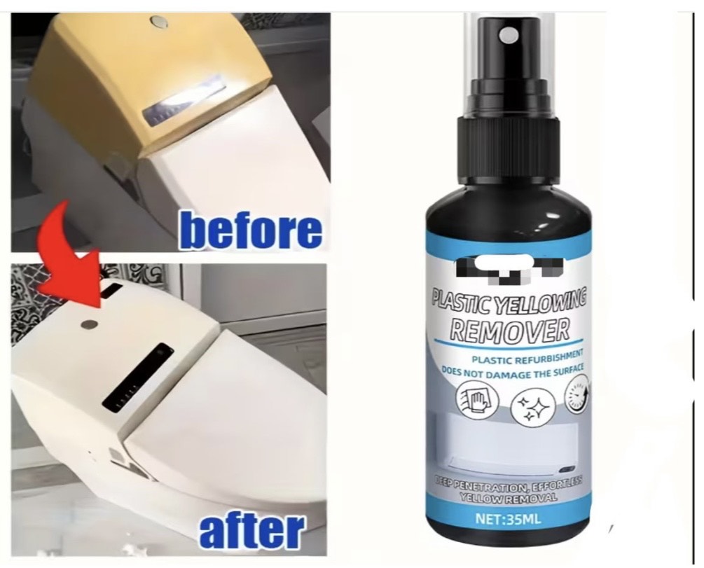 Plastic Yellow Remover Renovation Spray is the ultimate solution for restoring and rejuvenating yellowed, oxidized plastic surfaces. Specially formulated for household and automotive use, this advanced spray effortlessly removes stubborn yellowing, discoloration, and surface oxidation from toilet seats, door frames, appliances, and even vehicle headlights.